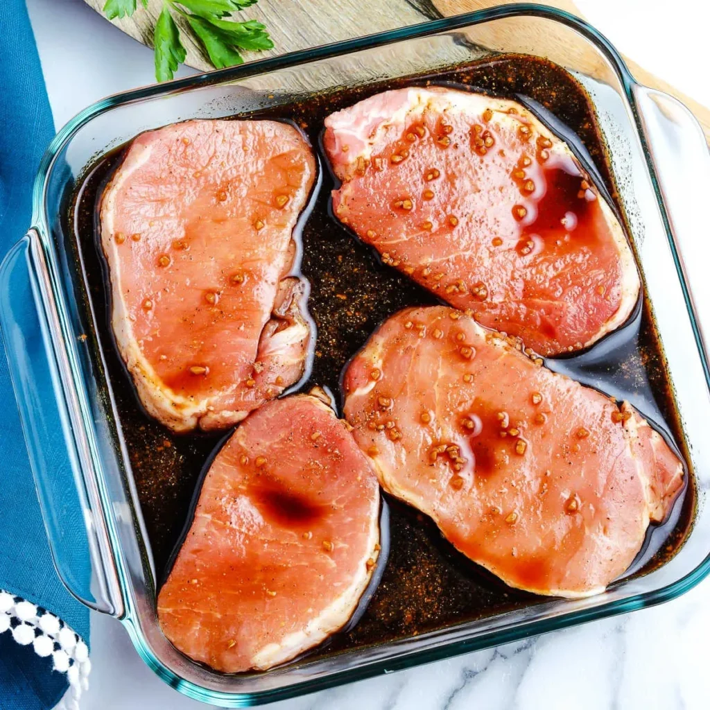 – Mediterranean Herb Marinade: Mix together 1/4 cup of olive oil, 2 teaspoons of dried oregano, 1 teaspoon of dried thyme, 2 cloves of minced garlic, the juice of 1 lemon, and salt and black pepper to taste. Marinate pork for at least 1 hour before cooking.